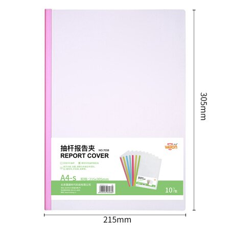惠朗(huilang)10只A4透明抽杆夹 彩色拉杆夹文件夹报告夹简历夹文件资料夹文具 5色装 7038