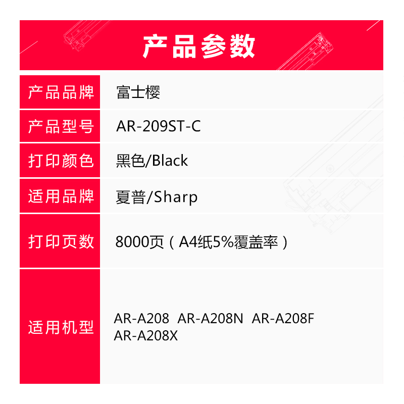 富士樱 AR-209ST-C 黑色墨粉盒 适用夏普 AR-A208 AR-A208N AR-A208F AR-A208X 复印机碳粉盒