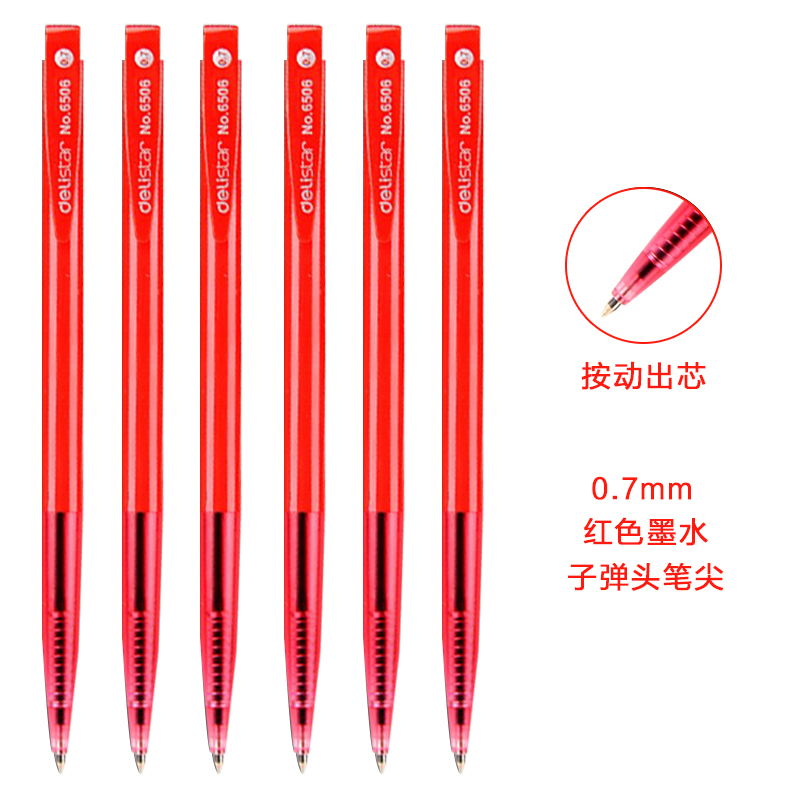 得力(deli)按动式12支圆珠笔 0.7mm 红色 6505 12支
