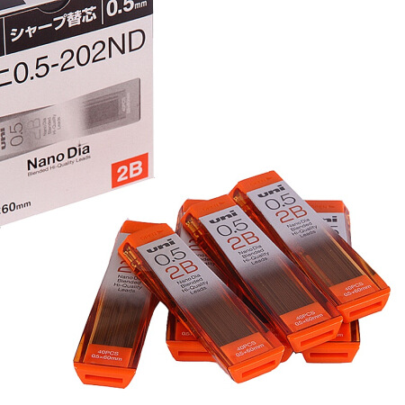 三菱(Uni) UNI5-202ND 活动铅笔芯 自动铅笔芯 纳米铅芯 2B 0.5mm(10支装)