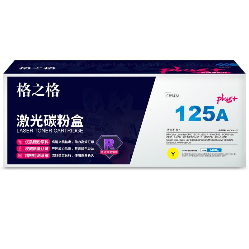 格之格 CB542A硒鼓适用惠普CP1215 CP1515n佳能LBP5050 MF8030cn打印机粉盒 hp125A黄色硒鼓 plus+版