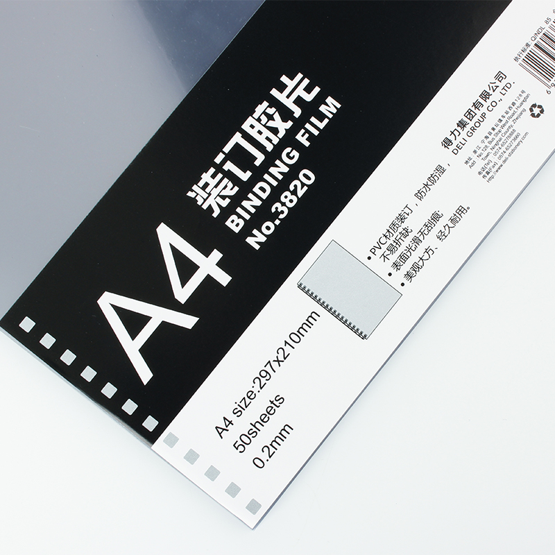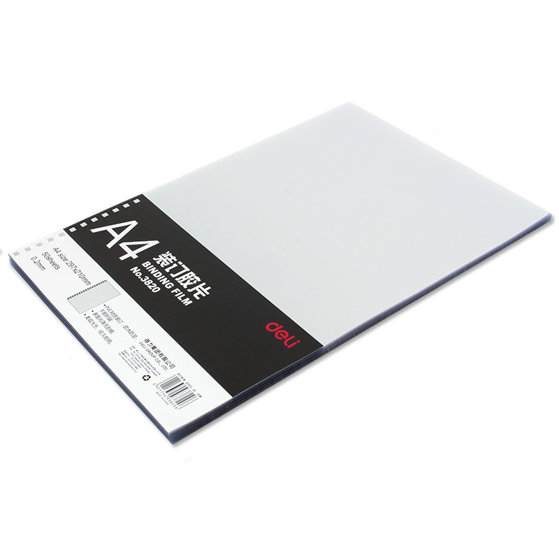 得力(deli)A4装订胶片 透明PVC胶片 3820装订胶片(50张/包)