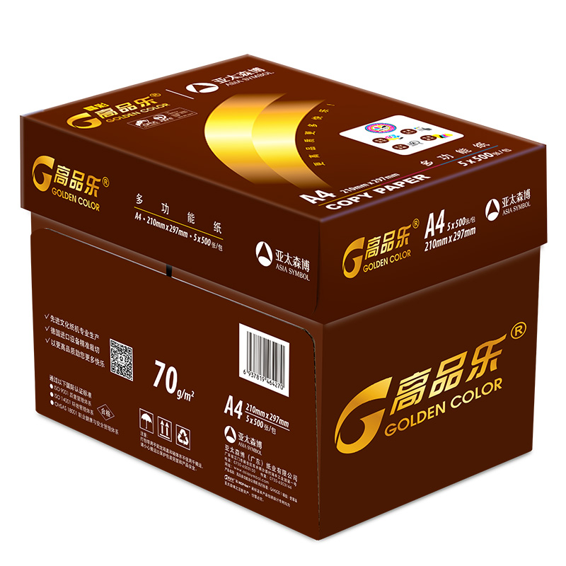 亚太森博 晶彩高品乐 70g A4 复印纸 500张/包 5包/箱 单位:包