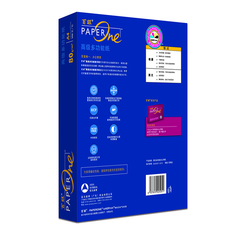 百旺高级多功能复印纸是亚洲区第一个采用HDPrint™ – 高清影印技术的办公用纸品牌;专为现代高速激光打印机和商务喷墨型打印机/复印机而计设;文本更清晰,图像更亮丽,干燥更快速