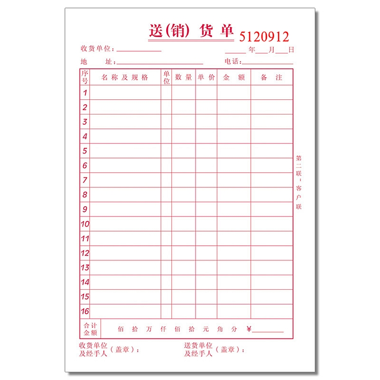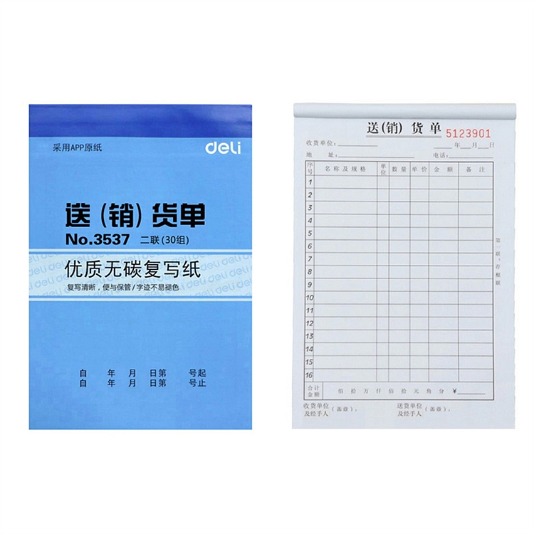 得力(deli)无碳复写单据 多栏竖式两联销货清单发货出货明细单据出入库单 3537二联送(销)货单 10本装