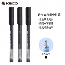 KACO 珍宝4倍书写超大容量0.5mm学生考试文具彩芯办公书写黑红蓝中性水笔速干K6 PASTEL 套装(05黑色笔芯)3支/盒