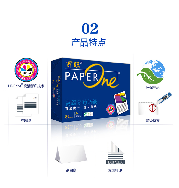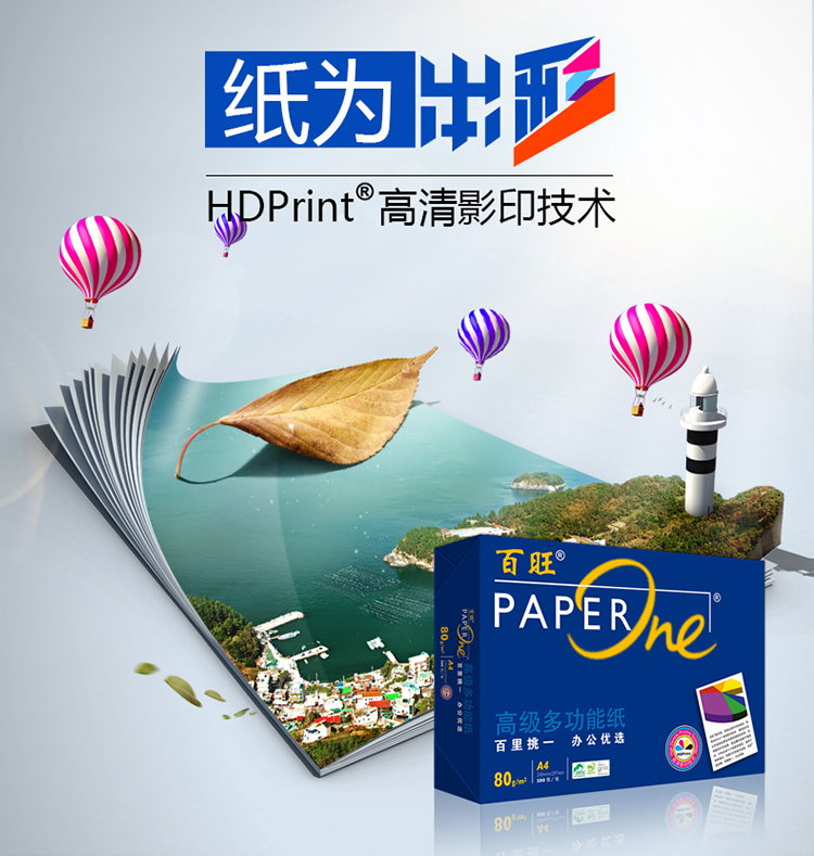 (蓝)百旺复印纸80g-A4-5包/箱-500张/包