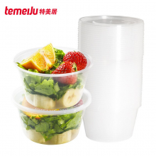 特美居 一次性饭盒圆形透明塑料快餐盒25只装450ml带盖外卖打包盒水果盒子便当汤碗餐具 TMJ-824