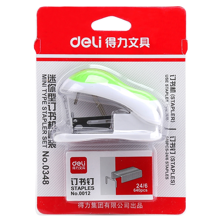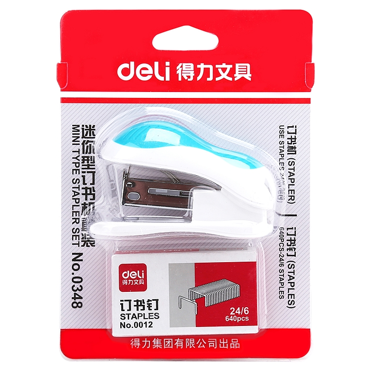 得力0348小型订书机订书器套装 迷你学习订书器 含12#订书针一盒
